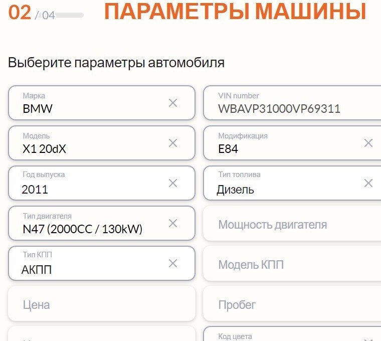 Часть данных об автомобиле, например пробег, нужно будет внести вручную
